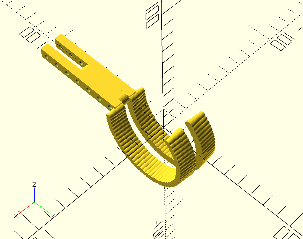 The design on the left hand was functional, but only provided a very small work space of only 4-6 mm. This video shows the amount of workspace available. The gear pinion on the right design, suffered from gear slippage.